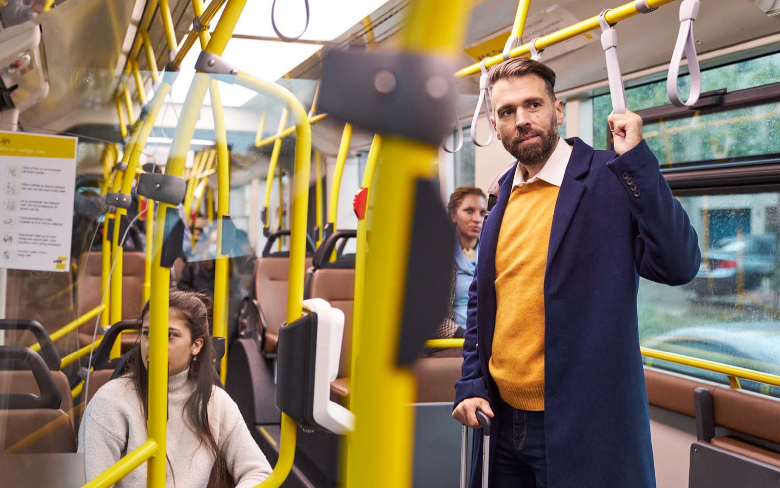Onbeperkt* reizen met bus of tram. Draagt jouw werkgever hierin bij? Dan betaal jij slechts 5 of 16 euro** per maand als de minimumbijdrage 72 % is.