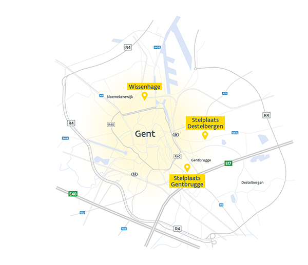 Kaart stelplaatsen Gent