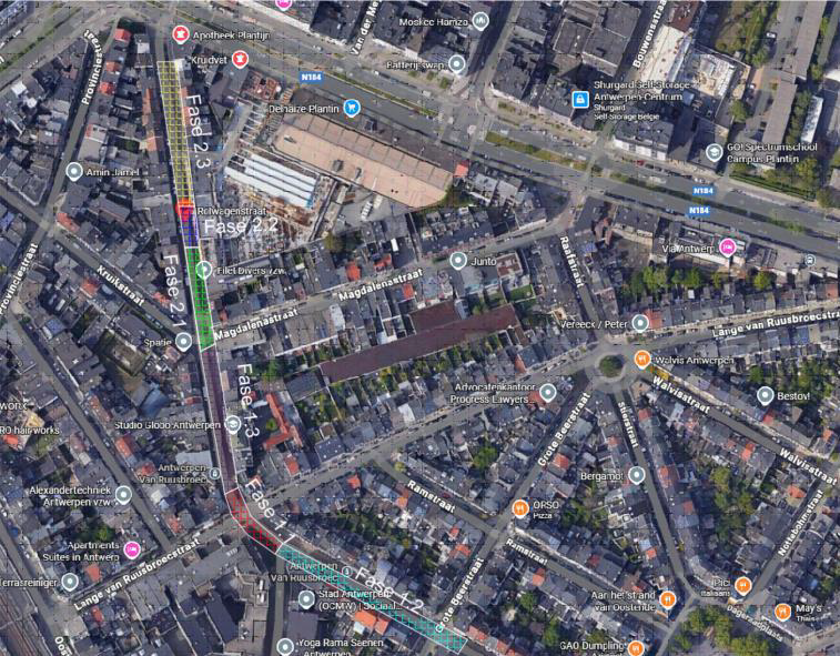 De werken verlopen in vijf opeenvolgende fases, waarbij telkens een deel van de straat wordt afgesloten. Zo blijft de hinder zo beperkt mogelijk.