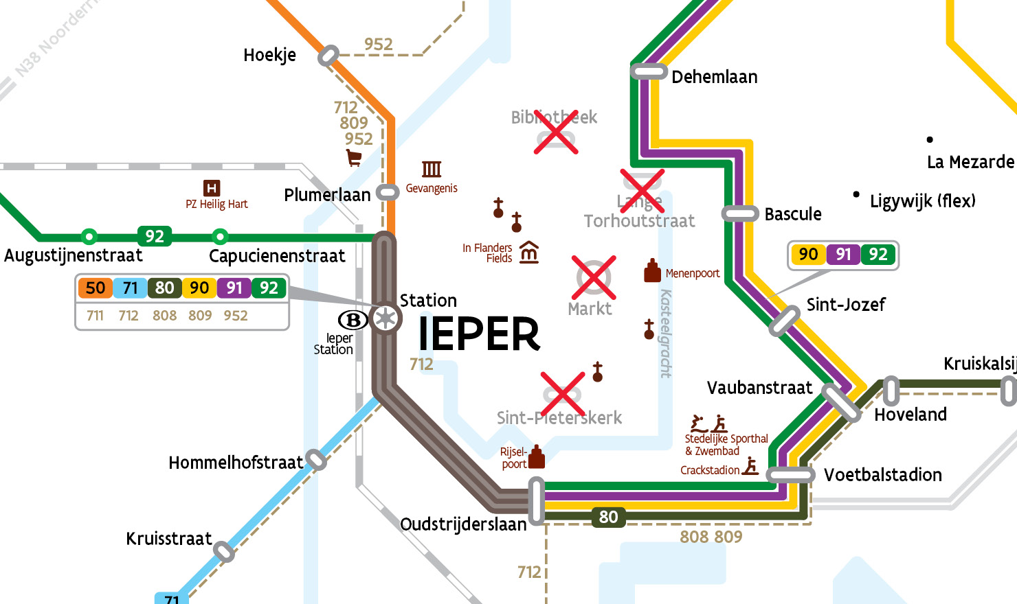 Bij evenementen en hinder in centrum van Ieper is er altijd dezelfde aangepaste bediening van het centrum.