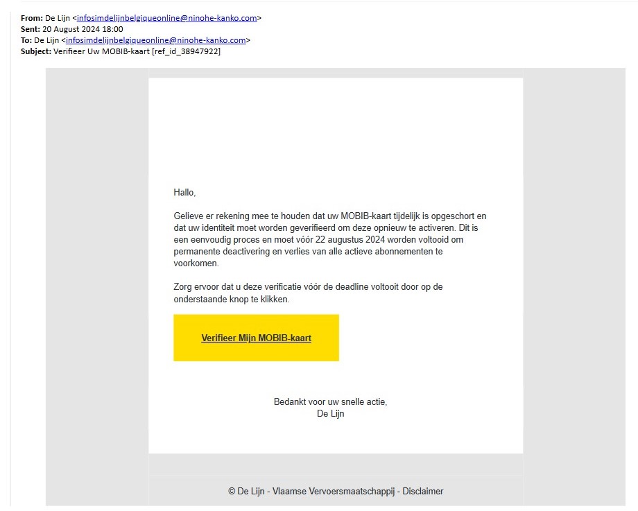 De afzender van de mail eindigt niet op @delijn.be.